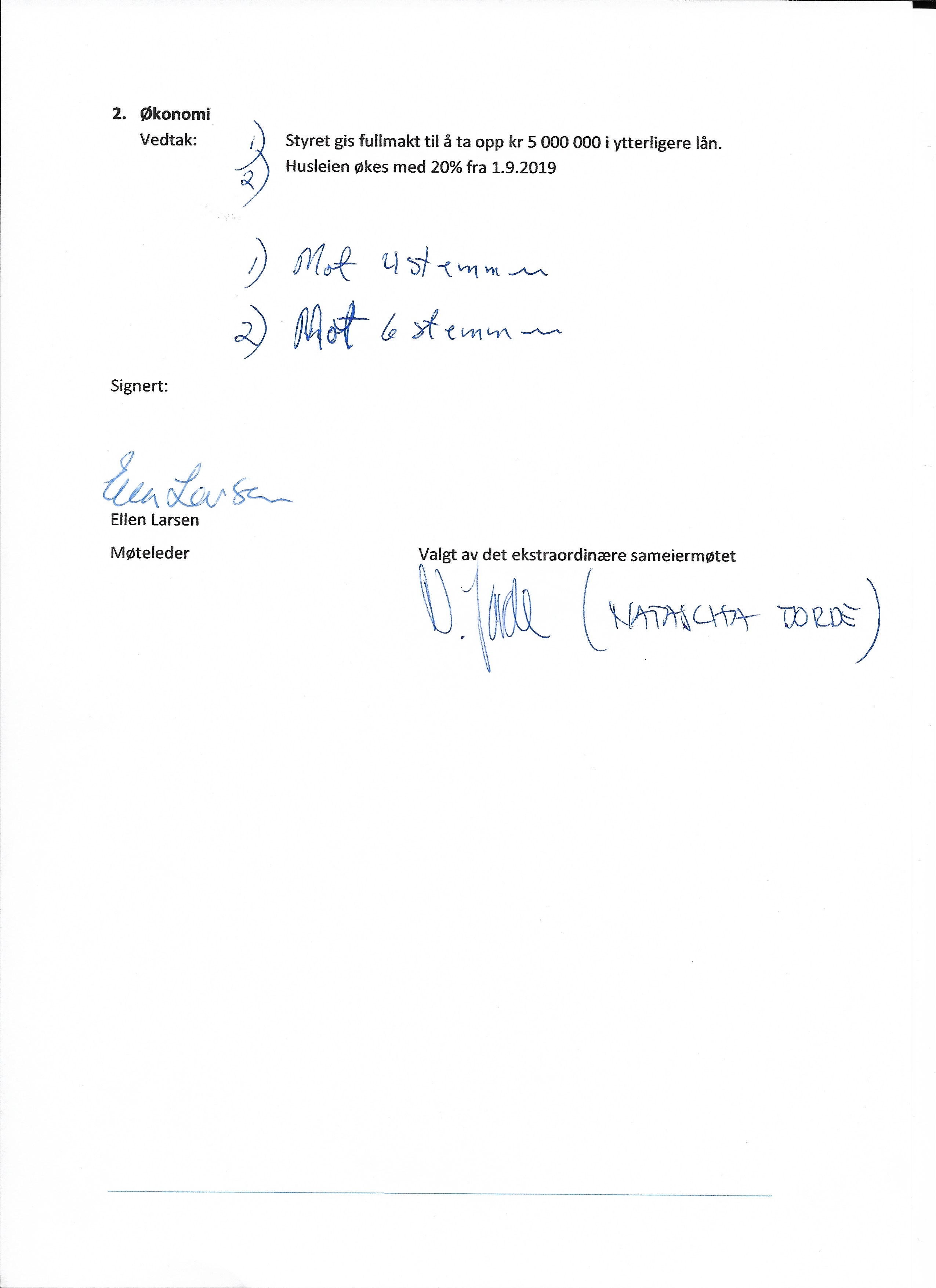 | 2019.08.2525.08.2019 | Ekstraordinært sameiermøte 2019, side 2 | Årsmøtereferater | 0,41 MB | |